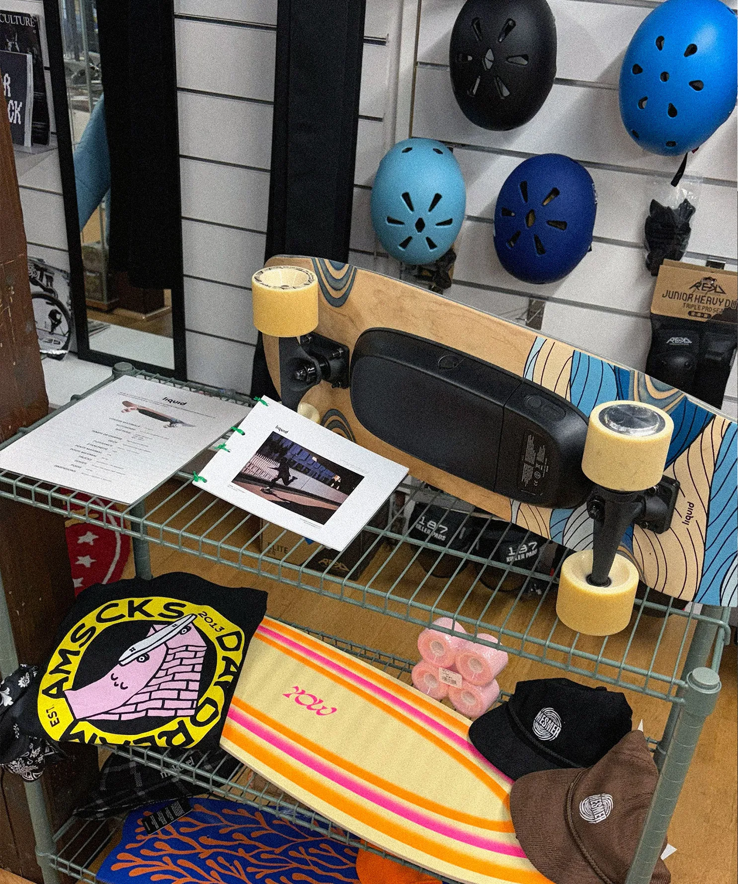 We recently had the pleasure of meeting Timothée, the owner of Terre de Glisse in Nantes, who loved the concept. As of January 2026, you can visit his shop to experience the Liquid Skateboard firsthand. Once our new inventory arrives, you’ll even be able to pick one up right on the spot.